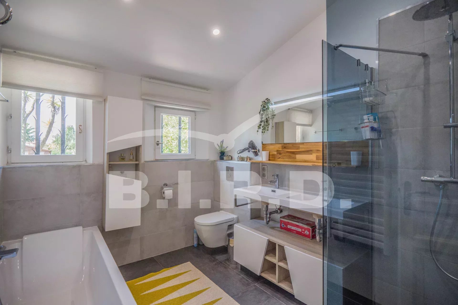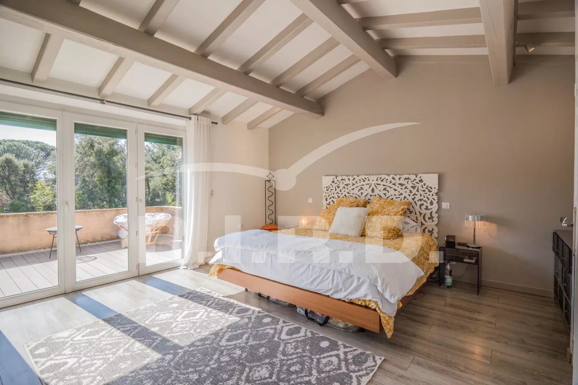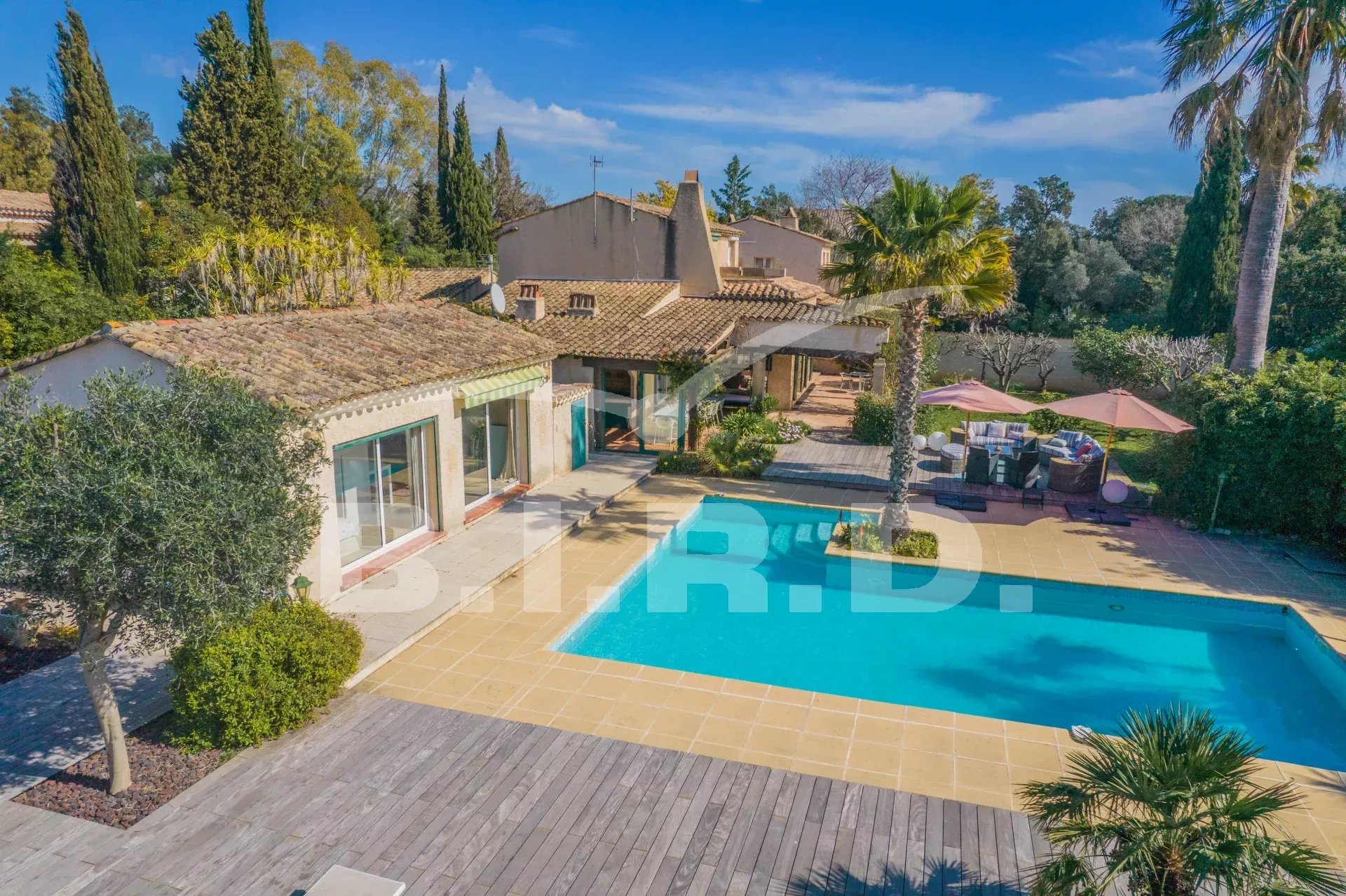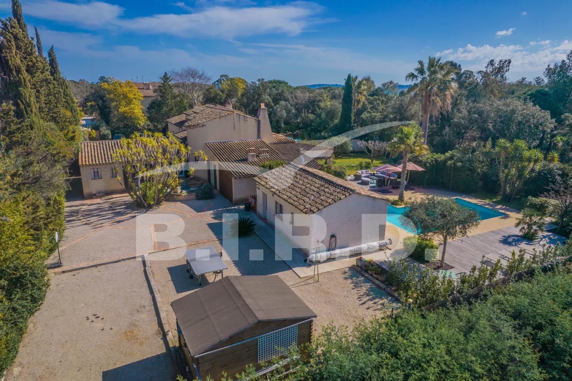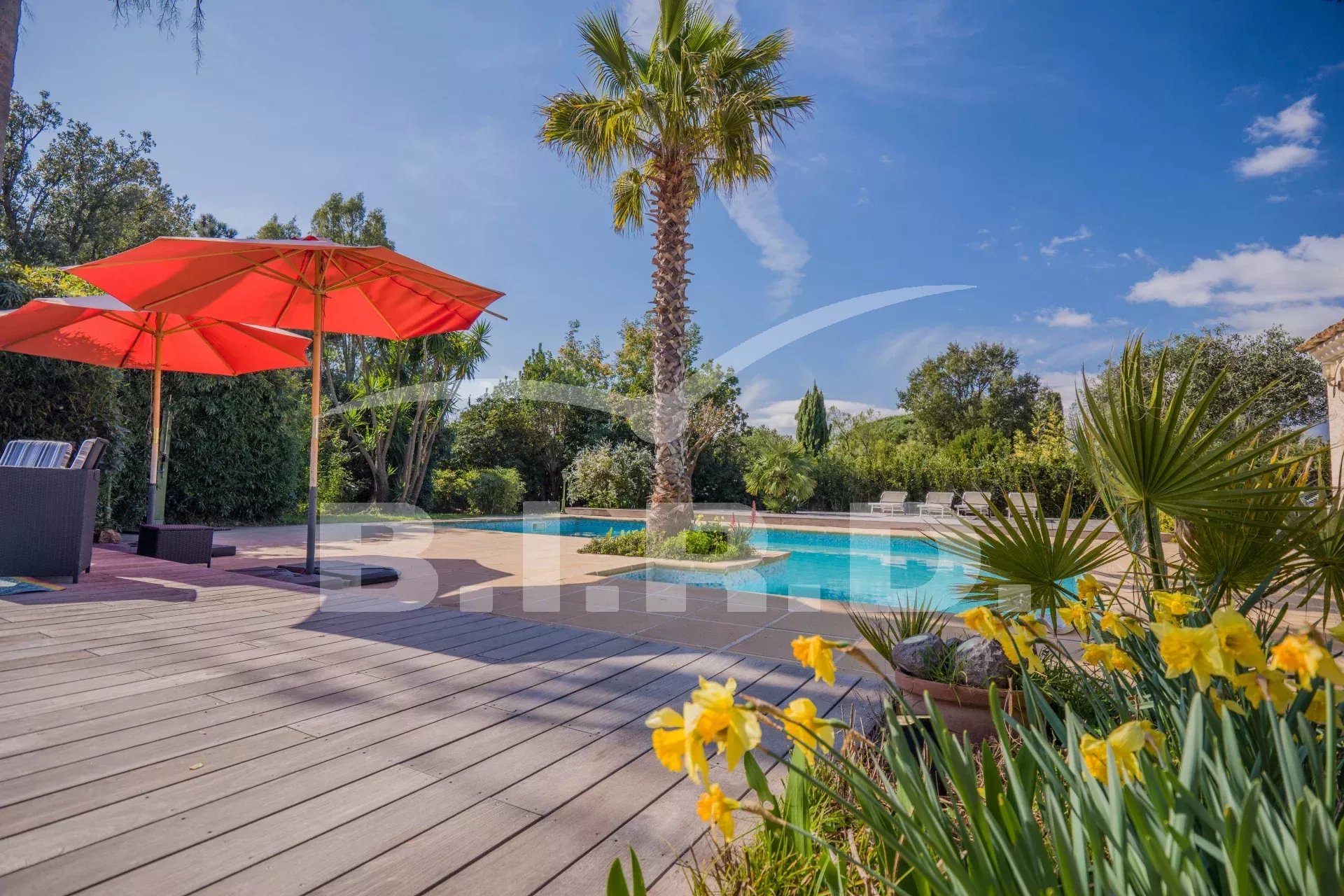 Diese charmante Villa befindet sich in der Domaine de Beauvallon, in der Nähe des Strandes und des Golfplatzes. Sie wurde auf einem flachen Grundstück von 1600m² errichtet. Sie besteht im Erdgeschoss aus einem großen Wohnzimmer mit Kamin, einer offenen Küche, einem Esszimmer, einem Büro und drei Schlafzimmern mit Badezimmern. Im Obergeschoss befindet sich das Elternschlafzimmer mit Ankleidezimmer, Badezimmer und einer schönen Terrasse mit Blick auf das Meer.