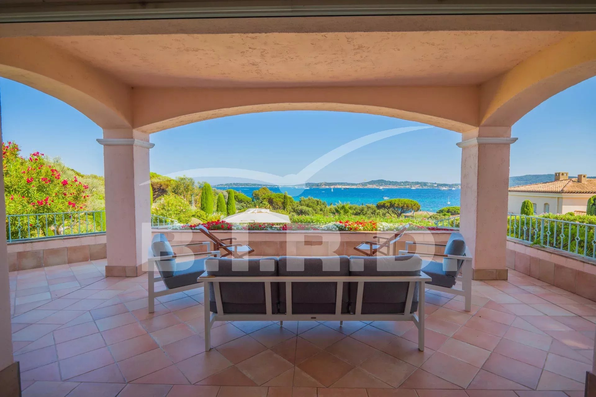 Située dans un domaine gardé et prisé, cette villa provençale de 310 m², en parfait état, offre une vue panoramique époustouflante sur Saint-Tropez.